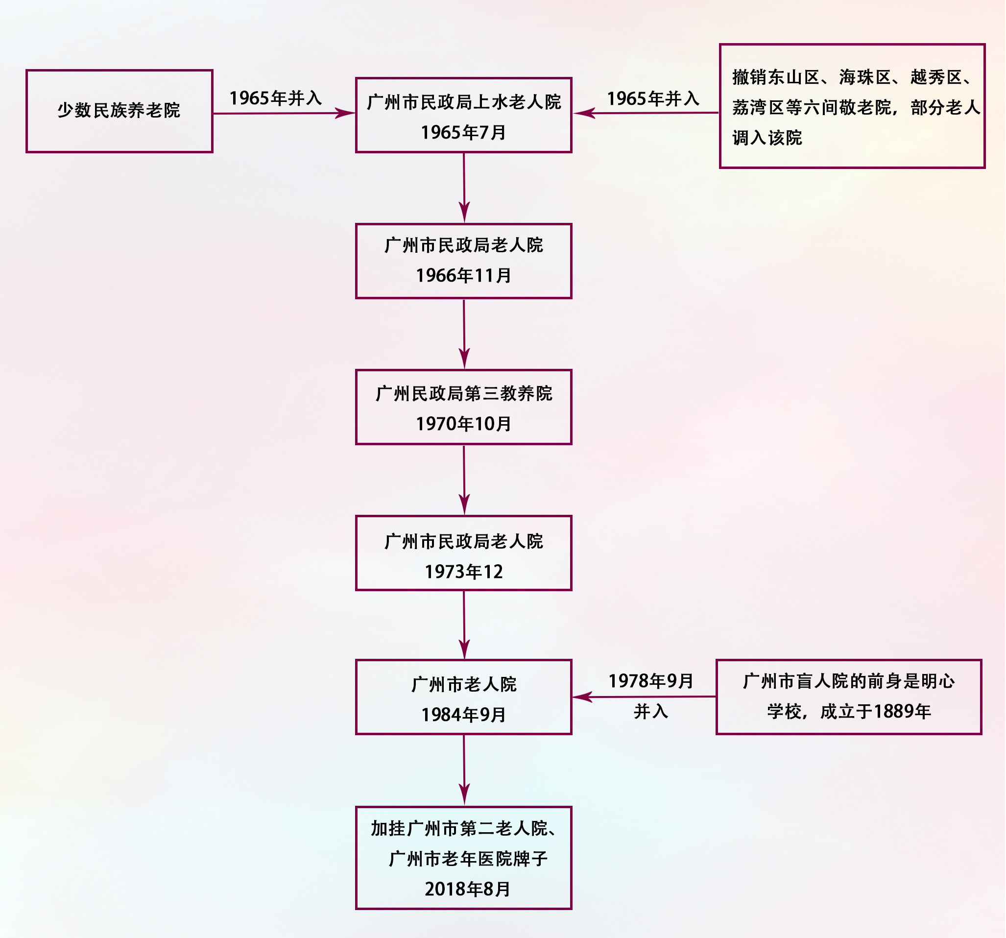 2014年初,我院成为第一批实行公办养老机构入住轮候评估机制的机构。2018年8月,我院加挂广州市第二老人院及广州市老年医院牌子。2019年6月22日,广州市第二老人院一期正式投入使用。2020年6月30日,广州市老年医院正式动工。
