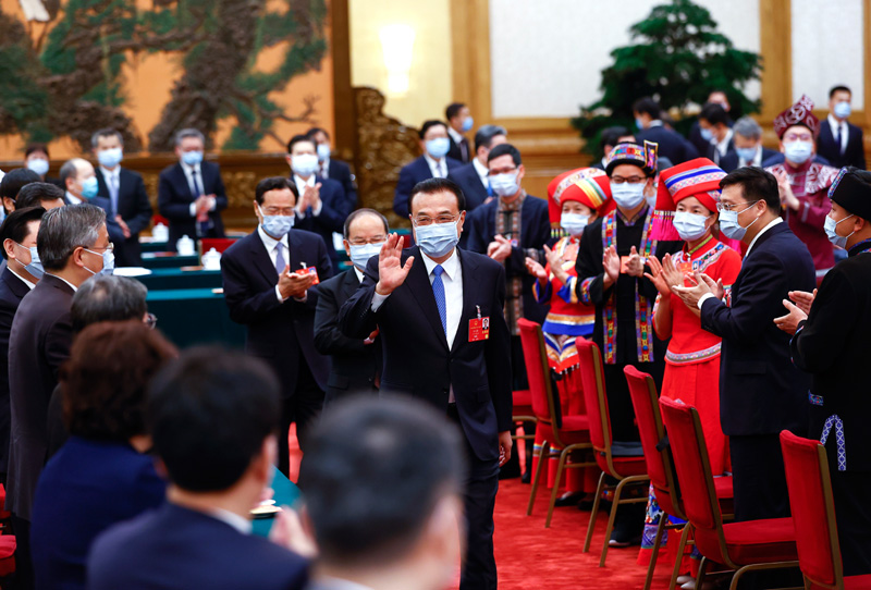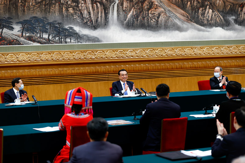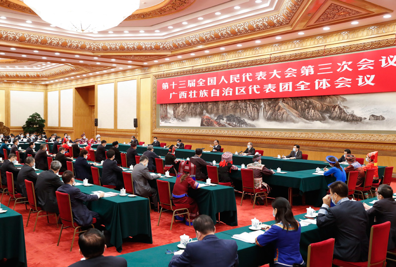 新华社北京5月23日电 中共中央政治局常委、国务院总理李克强23日上午来到他所在的十三届全国人大三次会议广西代表团,参加审议政府工作报告。鹿心社、陈武、彭石华等代表围绕着力实现“六稳”“六保”、推进西部陆海新通道建设、决战脱贫攻坚等问题踊跃发言。李克强与大家互动交流,深入讨论。他说,在以习近平同志为核心的党中央坚强领导下,广西与全国一样,面对错综复杂的国内外环境和突如其来的新冠肺炎疫情,各族人民攻坚克难,奋发进取,疫情防控有力有效,经济社会发展和民生改善又取得新成绩。