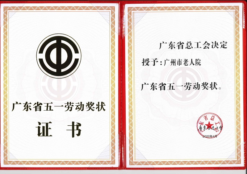 4月28日,2022 年广东省庆祝“五一”国际劳动节暨劳模表彰大会在广州召开。广州市老人院被广东省总工会授予“广东省五一劳动奖状”。