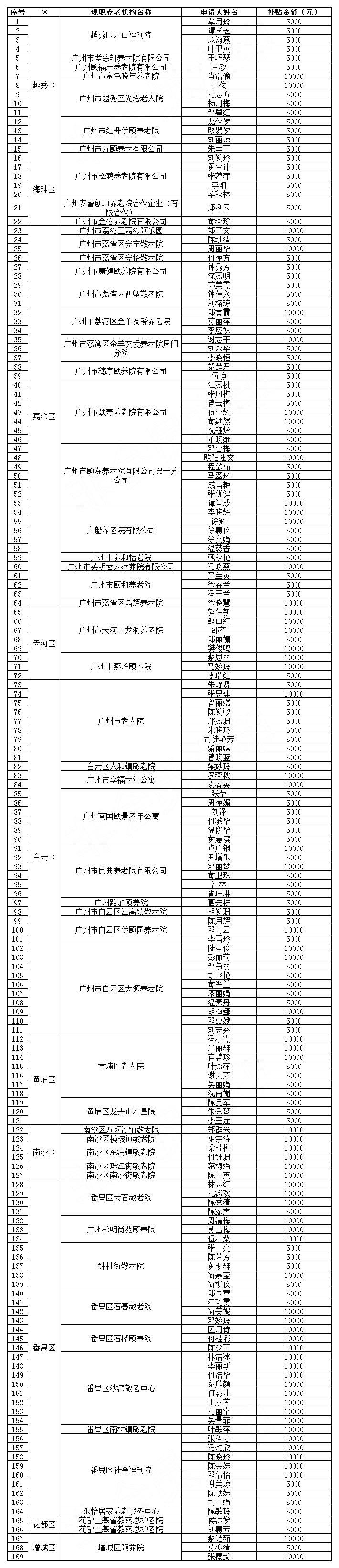 2018年养老机构服务人员就业补贴发放名单