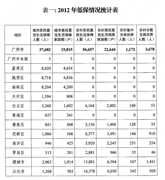 2012年低保情况统计表