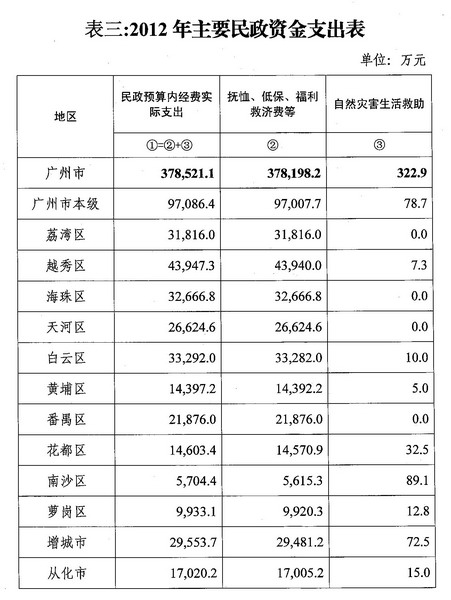 2012年主要民政资金支出表