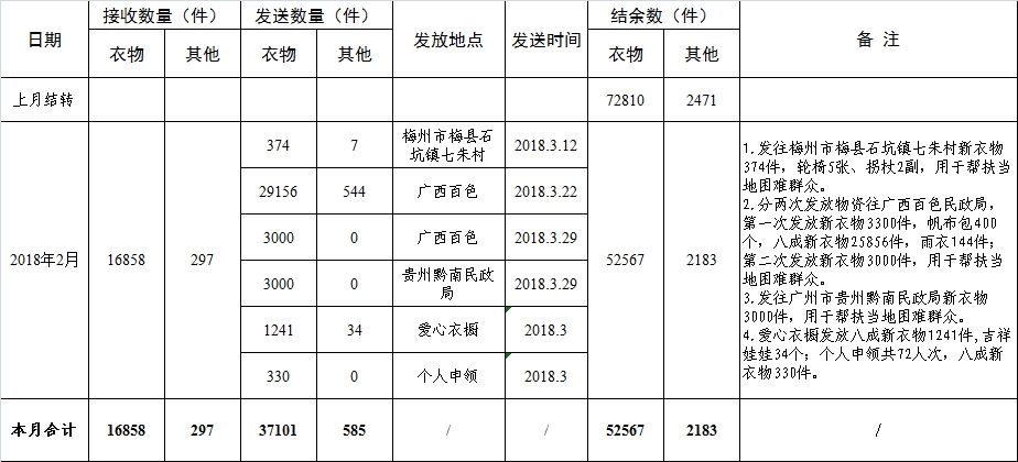 根据社会捐赠信息公开化的工作要求,现将2018年3月广州市接收社会捐赠工作站接收和发放社会捐赠物资等情况公告如下: