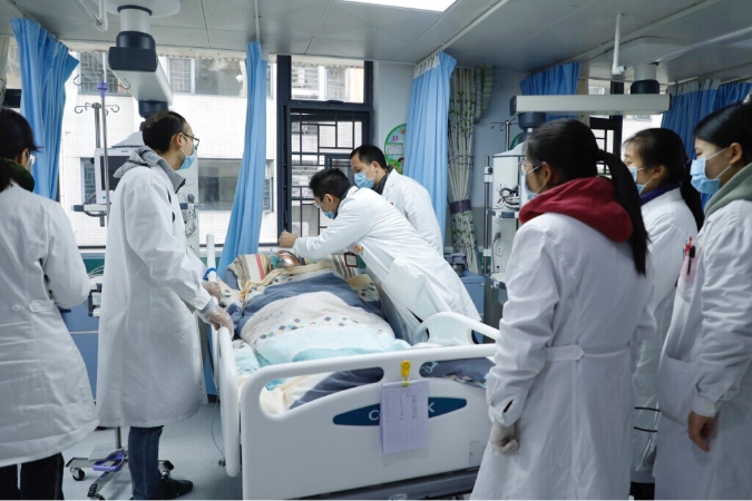春节期间,广州市老年医院医生团队坚守岗位查房中。受访者供图。