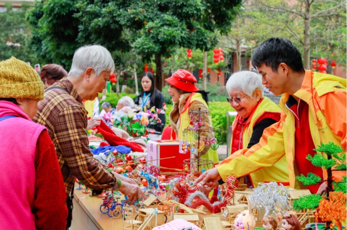春节期间,广州市老人院开展花市活动,老人正在做义工。受访者供图