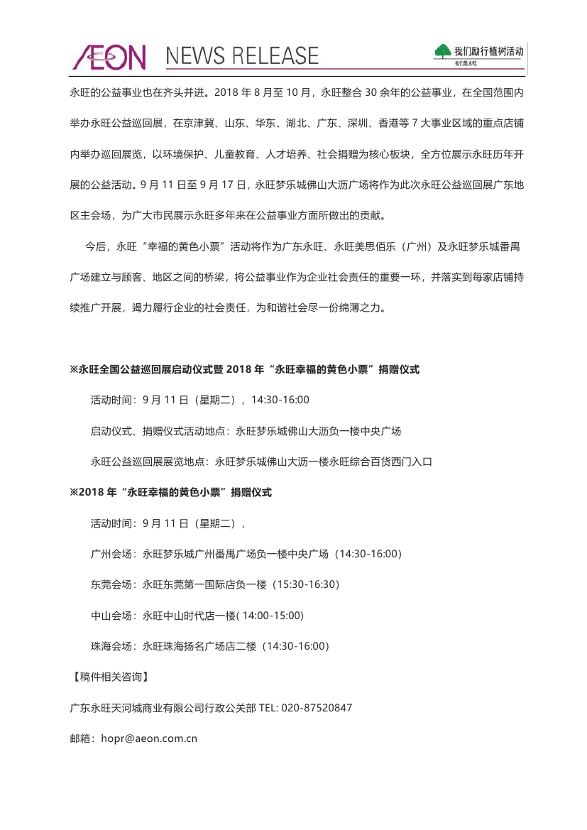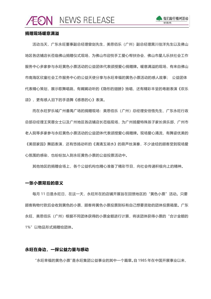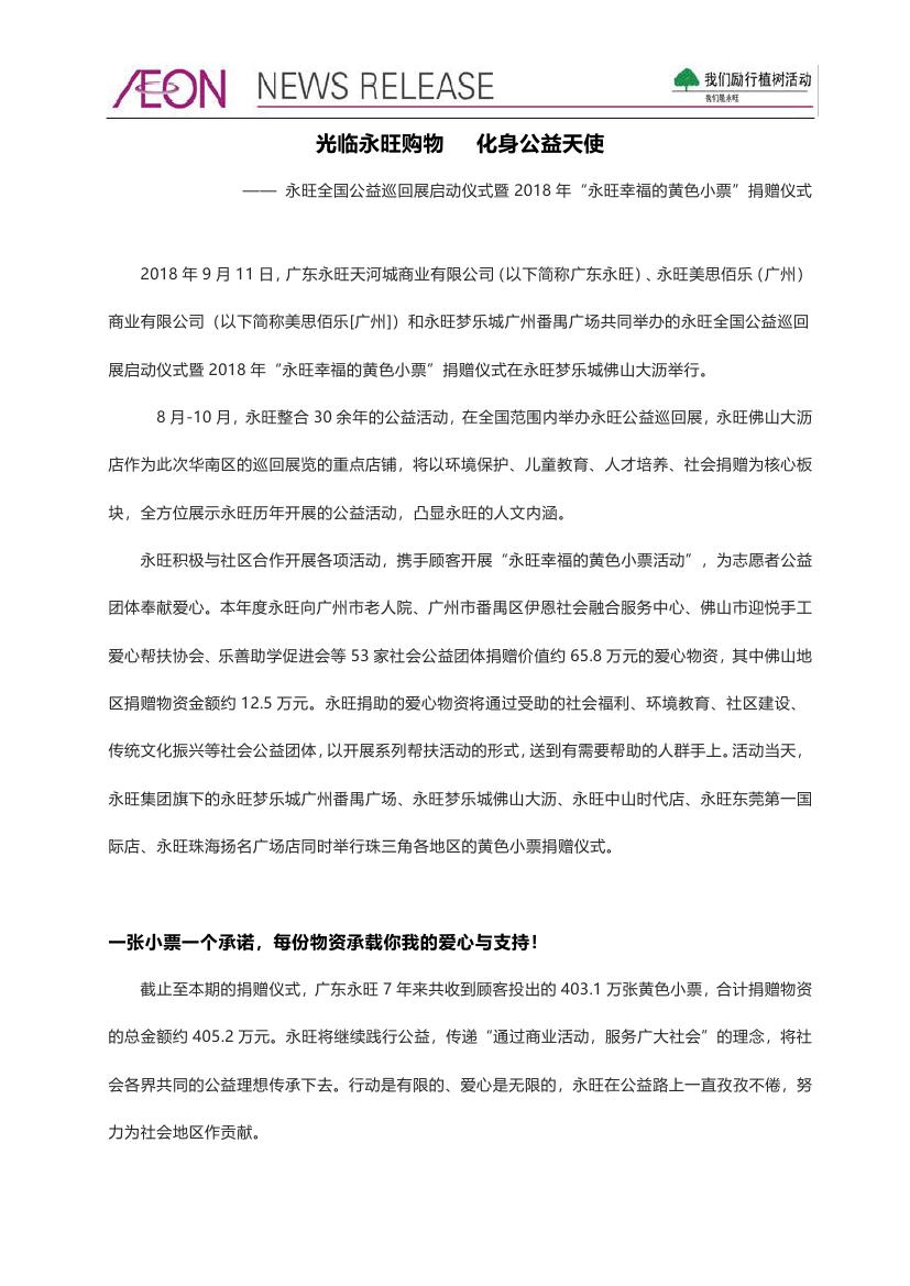 永旺全国公益巡回展启动仪式暨2018年“永旺幸福的黄色小票”捐赠仪式