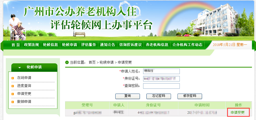 步骤四、点击申请变更,即修改包括跨区轮候志愿在内的申请信息。