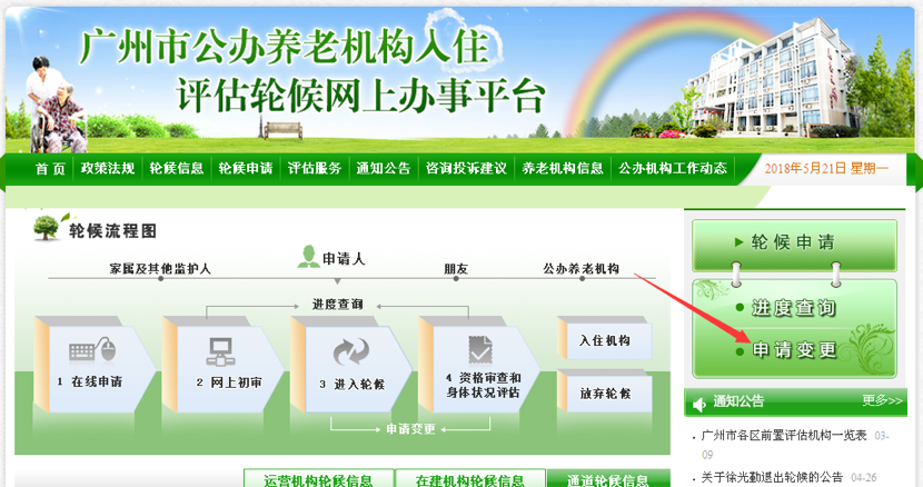 步骤一、访问广州市公办养老机构入住评估轮候网上办事平台: